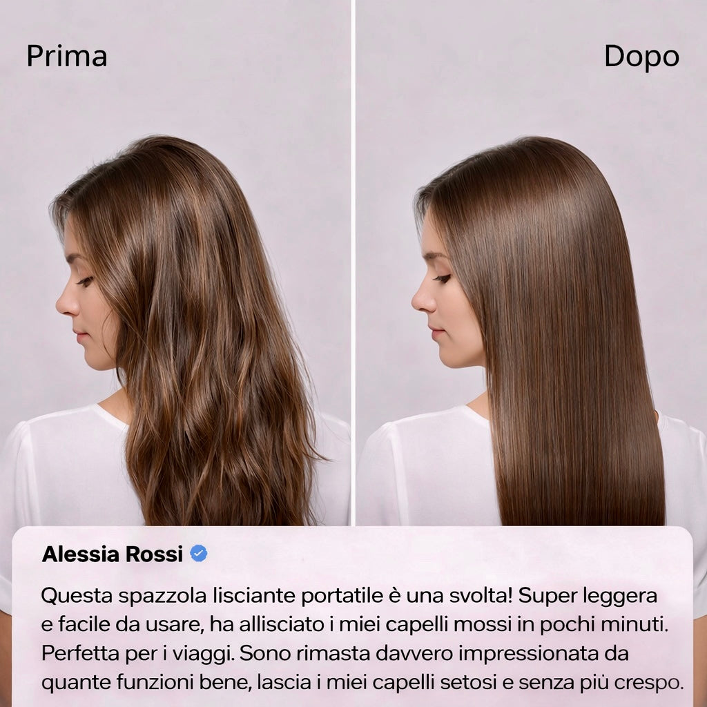 Riscopri la tua chioma con il nostro pettine lisciante portatile, progettato per disciplinare, lisciare e valorizzare i capelli in pochi minuti, ovunque tu sia.
